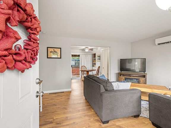 Come on over & enjoy a 'move-in-ready' home! Roof, Plumbing, Electrical all new in 2020, Front Fencing new 2021. New half bathroom added in 2020. New kitchen appliances and counters too! Built-ins, open shelves, great natural light with large windows and corner windows. Cozy old school red brick fireplace in the backyard with patio. Storage in garage. Refrigerator & Washer & Dryer included for move in convenience. Large downstairs living space for more flexible options. 3D Tour Available! [Home Energy Score = 5. HES Report at https://rpt.greenbuildingregistry.com/hes/OR10072694]