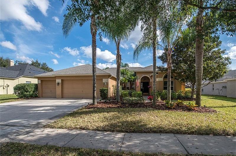 Looking for a gorgeous home in the highly desired neighborhood of Lithia Ridge, this is it! Greeted by lush mature landscaping, well-manicured lawn, tall palms, and NEW ROOF! Inside will impress you with rich wood floors, updated lighting and ceiling fans throughout. Three way split, open floor plan, with formal areas, family room + office + heated pool/spa and situated on a very private lot, fenced, with mature landscaping in the back yard. Dining room and living room are very spacious, perfect for entertaining and you have great views of the private backyard from the living room. Just off the dining room is the office with double French doors. The kitchen is a chefs delight with updated wood cabinets, soft touch drawers, granite, tile backsplash, SS appliances, breakfast bar and adjoins the breakfast nook with plenty of space for family gatherings. The large family room is just off the kitchen and features cathedral ceilings, plenty of windows and sliding doors leading to the covered lanai. Separate laundry room. Master suite is elegant and features two walk in closets, bathroom has dual sinks, separate vanity, garden tub with separate shower. Enjoy entertaining on your covered lanai, take a dip in the pool/spa, or just unwind after a long day as you enjoy your private backyard. This home has been well cared for and is located close to shopping, restaurants and a short commute to MacDill and downtown Tampa. Top Rated Schools and your own private parking to walk to Lithia Springs Elementary.