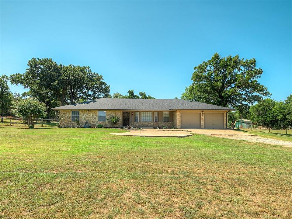 Nestled in a peaceful community, this beautifully updated 3-bedroom, 2-bathroom ranch-style home offers 1,758 sqft of modern living on a generous 2.43-acre lot. Recently remodeled to an open floor plan, this home features new carpet, fresh paint, and updated fixtures throughout. The kitchen and bathrooms boast stunning granite countertops, and the property has a brand-new roof for added peace of mind. Additional amenities include a barn and shed, perfect for storage or hobby use. Located in a quiet area with no HOA restrictions, only a road maintenance HOA, this property is a rare find. The seller is offering an update allowance or closing cost assistance to the buyer. Don’t miss the opportunity to own this gem!