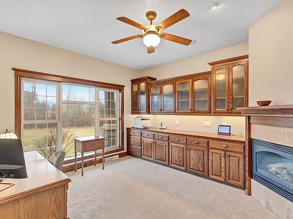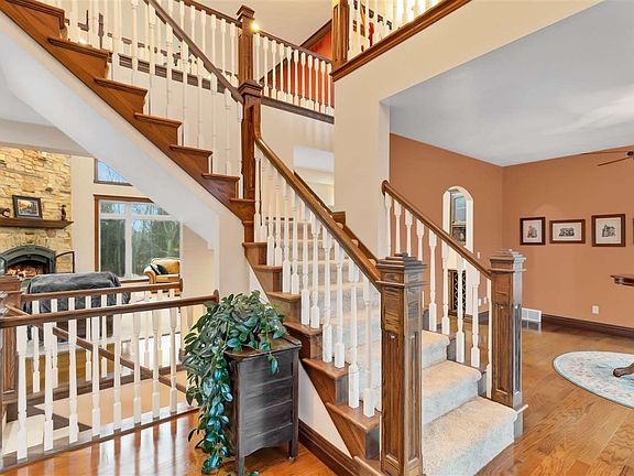 WOW! This stunning and sprawling 2-story home will get your attention right when you pull up to the circle driveway! Located on over 5 acres, this home has so much to offer! Enter through the inviting front porch and the large foyer with double doors and hardwood floors. You will appreciate the large office with plenty of custom-made cabinets and counter top, ceiling fan and gas fireplace. The formal dining room has hardwood floors, ceiling fan and a gorgeous window surround. The Chef's kitchen/dinette boasts tons of cabinets, walk-in pantry, center island/snack bar, 2 dishwashers, quartz counter tops, Jenn-air double convection oven, 6-burner gas stove top, 4-burner electric glass-top stove, wine cooler and extra sink. You will love to relax in your great room featuring soaring ceilings, a wall of windows letting in sunlight and a stunning floor to ceiling stone surround with wood-burning fireplace. The sunroom has French doors providing lots of natural light leading to the enormous stamped concrete patio with an arbor and ceiling fan. The 1st floor master suite, with large windows and ceiling fan, has a walk-in closet along with a private master bath that features Saltillo-tiled floor, granite countertop, jetted tub, double vanity, extra cabinets and a huge walk-in tiled shower with multiple shower heads and radiant in-floor/wall heat. A beautiful upper bedroom offers cathedral ceiling, ceiling fan and walk-in closet, plus a Jack-n-Jill bath with granite countertop to another spacious bedroom with a ceiling fan and walk-in closet. Don't forget about the 4th bedroom suite with ceiling fan, walk-in closet and a private bath with granite countertop. A large bonus room over the garage boasts 4 skylights. A large mud room/laundry room offers floor-to-ceiling cabinets, countertop space, freezer, deep sink and a large locker area. There is a loft area with ceiling fan and stunning window surround with a walk-in closet. Outside with this scenic lot, you will find trails to a picturesque large open area, trellises, large fire pit, gorgeous landscaping with a terraced retaining wall off the patio and abuts the Suamico River. The 4-stall garage with extra storage area is ready for a heater and has garage-to-basement access. Reverse osmosis, whole-house vacuum system, on-demand hot water heater, radiant in-floor heat in most of the basement/stubbed for a bath and future kitchen/entertainment theater area, three-floor elevator shaft (currently closets), zoned HVAC system, speaker surround in five rooms plus patio area, crown moldings and so much more in this Energy Star home! Updates include but aren't limited to new paint and carpeting, landscaping, and granite in all bathrooms. Built by Thompson Homes in 2006! This home is a must see!
