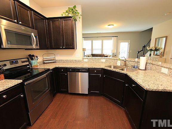 Beautiful, like-new 3BR, 2.5BA townhome ideally located in resort-like community of Highland Creek just 3 miles north of I-540 off Hwy 401 N w/easy access to Raleigh, RDU, & RTP. Lots of amenities include pool, tennis, clubhouse, playground & more. Gleaming hardwoods down. Kitchen open to Living/Dining area w/GRANITE & S/S appliances. Pleasing paint color throughout. Spacious bedrooms w/large Master w/tray ceiling. Master bath has soaking tub & walk-in closet. Refrig/Washer/Dryer all convey. 1-Car Garage