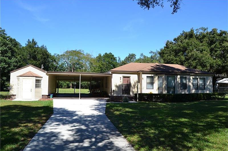 Check out this cute three bedroom, two bath home available in Plant City! This fully fenced, just under an acre property is place you are looking for. It has a huge back yard with a detached garage for extra storage. As you enter the home, you will notice the spacious living room with beautiful brick wood burning fire place. The galley style kitchen has plenty of room for cooking. The formal dining room just off the kitchen has beautiful hardwood floors. Two car carport. The detached laundry room has plenty of space for storage or can be used as a workshop. There is also another detached shed/workshop in the back yard. Schedule your showing today!!!