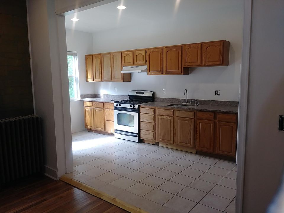 4 bedroom 1.5 bath porch front fenced in backyard with grass huge townhome with clean unfinished basement. Located near Liberty and Garrison close to plenty of shopping and subway station on major bus lines . Huge bedrooms with gas heat window AC available washer dryer available in basement stainless steel appliances updated cabinetry and more. First floor has beautiful original hardwood floors second floor fully carpeted updated bathroom to please the eyes. pics are while unit is being completed.