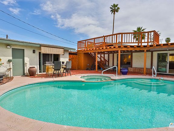 Nestled in the wonderfully eclectic Cathedral City Cove - above Terrace Road - is a spacious pool home worthy of being high on any must-see list Built in 1964 and still displaying much of its mid-century heritage, the property consists of a 3 bedroom/2 bath main house and a separate (fully permitted casita offers another bedroom, bath and full kitchen and can be used as extra living space, game room or generating additional income A custom-built deck overlooks the pool, spa and barbecue areas to yield a welcomed escape from where to soak in the astonishing views. An expansive living flows into the adjoining dining room separated by a dual sided fireplace. Two sets of double doors open to front and side patios adding even more indoor/outdoor living space. A remodeled kitchen leads to the pool and spa and completes the stage for great entertaining. And as wonderful as the property already is, there's still plenty of room to put touches of your own to this private paradise. "The Cove" is conveniently located near shopping, entertainment and great dining. Only a short hop away is the airport, casinos, world-famous El Paseo and some of the best hiking around. A great opportunity whether looking for a home of your own or an investor wanting to take it to a whole new level, do yourself a favor and make sure you see this one