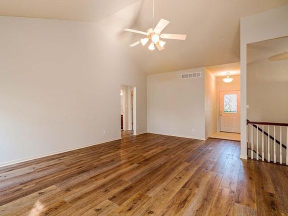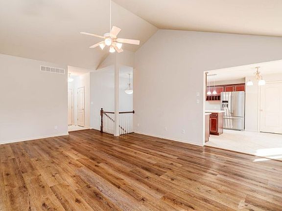This beautiful home is move-in ready! New HVAC system replaced in summer 2021, newer vinyl plank flooring - both upstairs and downstairs, paint and carpet. Wooded fenced yard, extravagant landscaping, deck, patio, and spacious corner lot. The living room features a stunning vaulted ceiling and gas fireplace. This home brings the split bedroom design, offers lots of extra space, including three walk-in closets. The kitchen features an island and new KitchenAid appliances which were installed in 2021! The spacious master suite offers a tray ceiling, walk-in closet, dual sinks, jetted tub, and much more. Downstairs offers a large family room, plus a guest suite with a private bathroom and walk-in closet. Two separate storage rooms (916 sq ft unfinished) - built-in shelving units, huge