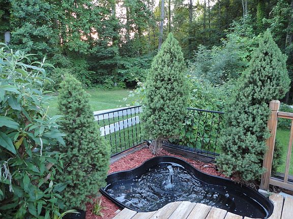 Quiet home nestled into heavily wooded lot with gentle stream. Professionally landscaped with sprinkler system. Oversize deck with ornamental pond and ground lighting. Additional electrical sources to support individual preferences. Deck furniture included. Complete guttering with screen leaf guards. Oversize detached 2-car garage with work bench and storage. Separate storage building for additional storage. Fenced backyard. Monitored (optional) security alarm system. Interior has vaulted living-room ceiling. Custom painting & wallpaper throughout. Designer ceiling fans and cherry wood cabinetry. Interior walls insulated for sound absorption / reduction. Custom window treatments, wood blind shutters, all kitchen appliances and refrigerator included. Designer sink & retractable faucet and under cabinet lighting in kitchen. Master-bath features separate vanities and lighting. Master-bedroom features vaulted ceiling and two separate walk-in closets.