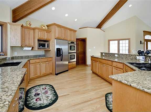 This stunning walk-out ranch located at The Ridge at Echo Valley is a one-of-a-kind. The beamed ceilings and center fireplace of the great room is breathtaking and creates an open-floor plan perfect for entertaining and enjoying the gorgeous golf course views. With more than 4515 sq ft, this amazing custom-built home is loaded with features including: 5 bedrooms and four bath areas, a huge kitchen on the main level and second full kitchen in the lower level, stainless steel appliances throughout, granite, hardwood floors, a sprawling deck overlooking Echo Valley Golf course, a 3 seasons room wired and plumbed for a hot tub, a finished walkout lower level with a huge open family room, full kitchen, two full baths and three bedrooms. The master suite on the main floor has a walk-in closet with custom shelving, tray ceiling, large custom tile shower with dual shower heads, a double vanity and access to the deck. Don't miss this amazing home. Call Heather Starr today for a private showing. 515-669-1763