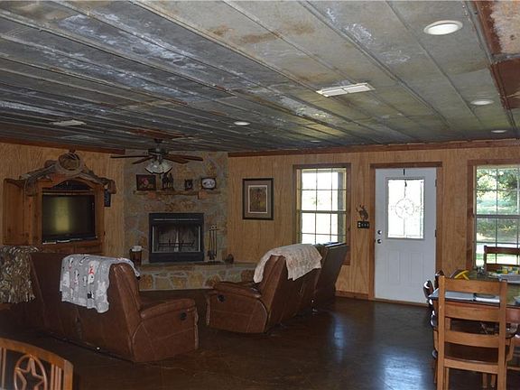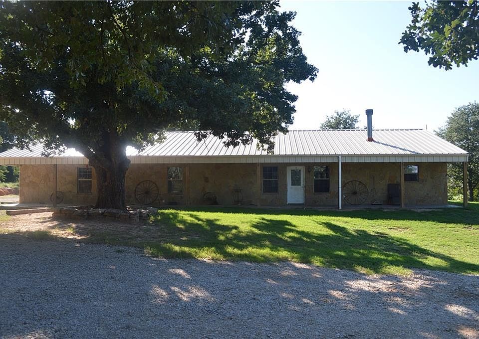 Country Living at It's Finest- This 24 + acres sits on Denton creek just minutes from Bowie. It features a large 5-3 rock and metal home with CH-A, large open concept with WBFP and large kitchen with brkfast bar. It also has a large screened in back porch with a view of one of the most beautiful bottoms in Montague County. Additionally it has a large metal shop, two water wells, chicken coop, gorgeous large trees and that at home feel that is hard to find.