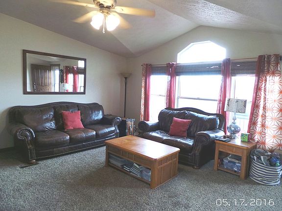 This is a really nice property on the High Mesa Airpark runway. Even if you don't fly, you can enjoy the airpark. The efficient layout allows for large bedrooms and plenty of open space in the living room and kitchen areas. The master bedroom is on the opposite side of the house from the other two bedrooms. It's spacious walk-in closet can be accessed from the room or the bathroom. There is a soaker tub, shower and double sinks in the Master Bath. The guest bath also has a tub. The grounds around the home are well maintained. There is a circular driveway in front and an RV area on the west side of the house. The pump house for the well also has extra storage. The kitchen has plenty of prep space and the sink faces the bank of windows that give you great views. There is a veggie garden in back and the area around the home is fenced. If so inclined, there is room at the back of the lot to put a hanger on the airstrip. A Lease-Purchase option is now available.