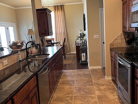 Located in Raintree Addition, this beautiful home has many amenities. Custom wood cabinets and granite countertops in kitchen and bathrooms. Stainless steel appliances. Master bathroom has double walk-in shower with jets and separate tub. Electric fireplace in family room with beautiful windows overlooking a large L shaped patio and backyard. Flagstone paths that lead to the back gate and firepit area. This home has a split floor plan. New roof, front door, kitchen tile, water heater, faucet and garbage disposal. Total electric with forced air. Three car garage It's worth your time to take a look!!