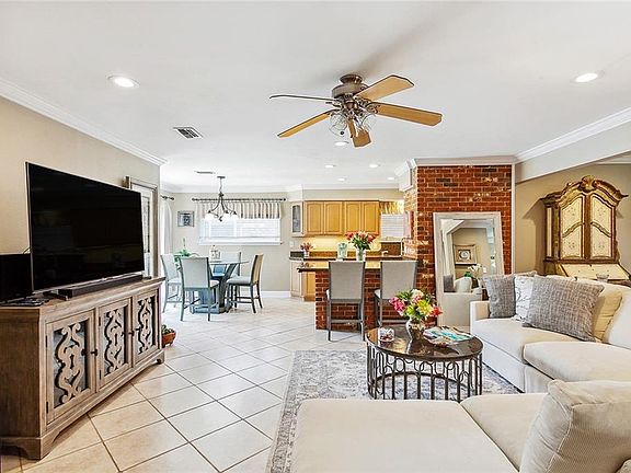 Don't miss out on this gorgeous home in demand area! Move right in!!! Beautifully maintained that exudes the pride of ownership. Open living areas to kitchen and breakfast nook, granite countertops, cabinets galore, gas cooktop, bricked snack bar and accent wall, formal dining room, light and airy breakfast room, large primary bedroom, primary bath with hydro spa tub, recessed lighting, crown moldings. Gleaming tile and wood flooring throughout. 8 x 12 workshop. Fenced back yard with patio. Flood zone X. Must see!