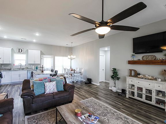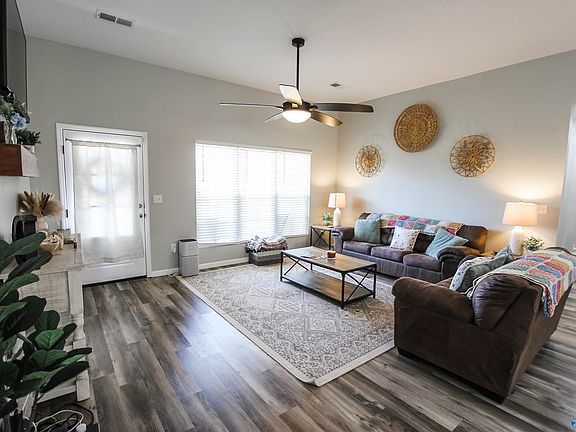 This attractive newer built home in Hokes Bluff School District backs up to Big Cove Creek and offers a split bedroom floor plan with 3 bedrooms, 2 bathrooms, and a bonus room upstairs. Beautiful LVP flooring runs throughout the main level of this home, except for tile in the laundry and bathrooms. The open concept living areas have a high ceiling, making the space feel open and airy. The modern country Kitchen features an island with breakfast bar and timeless shaker style cabinets with matte black pulls and gorgeous granite countertops. There is great storage thru-out this home, and everything feels like new. Convenient location, just minutes from Glencoe and the Gadsden City center.