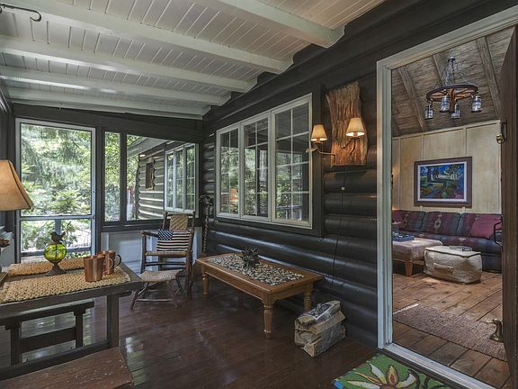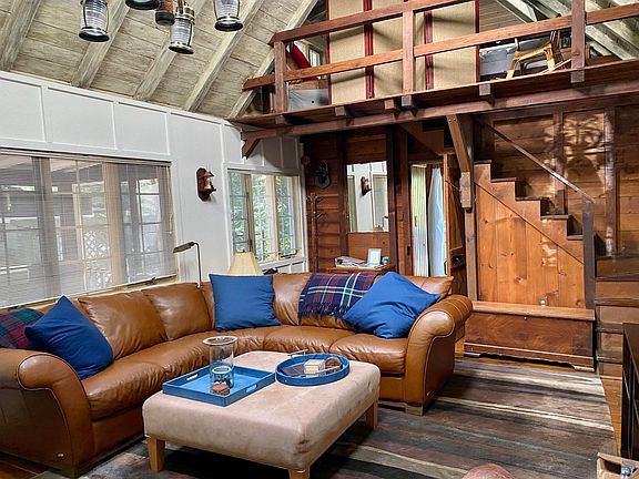 Escape to this charming cozy cabin nestled in the heart of the woods just a short stroll to Stop 38's stunning Lake Michigan beach. A perfect year-round retreat. This A-frame gem offers a great room with soaring ceiling and magnificent fieldstone fireplace. The newly refinished hardwood floors that span the entire cabin add a touch of rustic elegance, complementing the freshly decorated interiors and all new appliances. Aptly named ''Mr. Bear's Cabin,'' this dwelling boasts Ralph Lauren decor and comes fully furnished. Your favorite spot awaits you on the back or front screened porches, a haven for dining al fresco. As the sun sets, retreat to the backyard fire pit area, romantically illuminated by market lights. Store your bikes and beach toys in the newer full-sized shed. New septic.
