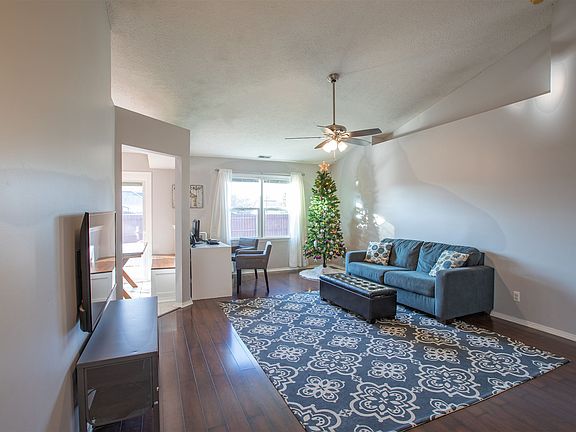 Looking for clean lines, contemporary style, and Yas! updates? This is it! Needle Pointe welcomes you home with a freshly painted, classic black front door that leads to an airy great room with a vaulted ceiling, gorgeous wood floors, and loads of natural light thanks to NEW windows. Clean lines draw you toward a cleverly designed dining area with built-in bench/storage seating and backyard views through the BRAND NEW sliding glass door. You will not want to leave this completely RENOVATED kitchen. Tranquil deep blue cabinets pair stunningly with the NEW custom concrete countertop, white subway tile back splash, and snazzy stainless steel wall-mount hood vent. IMAGINE entirely new stainless appliances to match (on order & to be installed mid-December). Drag yourself away from the dreamy kitchen long enough to take a peek at the 3 bedrooms. The lovely wood flooring from the great room flows into all the bedrooms and each boasts its own new window, spacious closet, and clever storage features from floating shelves to built-in book rack, to custom closet drawers in the owner's suite. Two bedroom share an updated full bath that mirrors the clean lines and color scheme from the kitchen and boasts a new vanity along with new faucet and shower head in your tub-shower. In owner's suite bath, a SHIPLAP accent wall, soothing blend of crisp, white porcelain and understated greige, along with a stand shower tempt you to linger in your ... but you really must see the backyard where the contemporary style and clean lines of the interior repeat. A new privacy FENCE surrounds your grassy oasis while a sun sail shades your dining patio. The level yard and river rock patio are ready for your grill, smoker, sandbox, and swing set! Close to schools and a park, you will love the network of sidewalks stepping right off your cul-de-sac. Rest easy also knowing your new ROOF was installed 2019, your HVAC has received routine 2x/yr maintenance, and your whole place is covered by a 1-year Home Warranty.