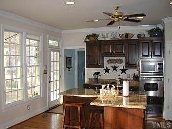 Well maintained home w/custom features galore. Permitted & finished 3rd flr flex room. Walk-in storage, built-in bookshelves, window seat. Gourmet kitchen, open floor plan, sunroom & screen porch. Built-in desk & shelves system in 2nd flr bonus room. New roof 2015. Exterior paint 2018. Over half acre yard w/trails, sprinkler system & play equip. NO CITY taxes. No HOA dues. Don't miss out! Close to Cary, 540 & US1 Check out virtual tour for additional photos of this amazing home and .75 acre yard