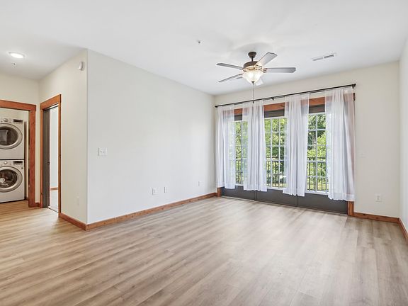Spacious community roomOn-site trail accessContemporary open shelvingCovered parking optionsHigh-end appliancesIslands with limestone topsWoods-lined backdrop