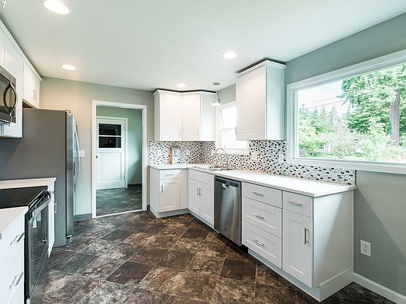 Fully Remodeled 1 Level next to Powell Butte. Features All New: Kitchen & Bath Cabinets, Quartz Counters, Ext/Int Paint, Stainless Appliances, Electrical Panel & Wiring, Refinished Hardwood Floors, Vinyl Insulated Windows, Heat Ducts, Lighting/Plumbing Fixtures, Oversized 2 Car Garage with New Concrete Driveway. 1/3 Acre Lot is Dividable;Buyer to do due diligence.Walk to Powell Butte Nature Trails