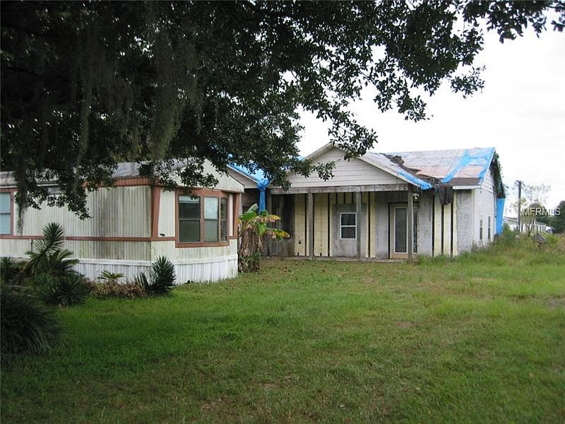 CASH OR HARD MONEY ONLY...Single wide Mobile has 2 baths and a large block home built up to roof.. plumbing and framing has been done inside.. Needs a lot of TLC .. Single wide is a 2bed 2Bath open front porch.. House is about 2800 sq ft..you can move the Framing around to make it your WAY. SOLD AS-IS .GREAT AREA on paved road North of I-4 Great Potential.. look at offers.