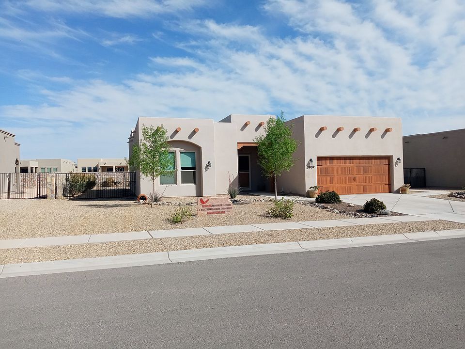 Built in 2022, barely lived in 2039 SF, 3 bedroom, 2 full-baths in upscale Red Hawk Golf Club Estates. Only a 5-minute walk to new golf course clubhouse with restaurant & bar. Excellent neighbors who look out for one another. New LG washer/dryer, side by side fridge and water softener included. Tile floors throughout, beautiful energy-saving double-honeycomb window coverings and custom glass front storm door, large primary walk-in closet. Finished/fully insulated 3 car garage, wired for electric vehicle charger, air/heat & freezer. Fully-landscaped front and back yards with large patio and double side gates for small RV storage. Gardner provided for seasonal clean-up, but tenant expected to use the on-site blower to keep walkways and porch areas clear of dust. Owner pays monthly water. Tenant pays Las Cruces Utilities natural gas & garbage/recycle ($60 summer, $100 winter) and El Paso Electric $125 summer, $60 winter) internet/cable, $175? 30-month lease preferred but will accept 12-months at a time.
