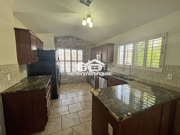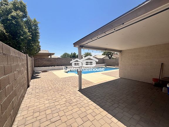 Nestled in the desirable North Canyon Ranch community off Happy Valley and 39th Ave, minutes to TSMC, GCC, Norterra, and access throughout the valley via 101 and I 17. This 3 bed 2 bath meticulously cared for home has many unique upgrades that make it so special. Tile flooring throughout main living areas, vaulted ceilings, stunning custom stone accent walls, gorgeous plantation shutters on all windows, rich cherry kitchen cabinets, granite countertops, and stainless-steel appliances. Master with custom California closet organization. Outside, a covered patio, and a huge, refreshing private pool. Garage with epoxy flooring and custom cabinets. No expense spared in this home, and it's now ready for its new occupants. Pool maintenance included in rent. Tenants responsible for landscaping. Qualified applicants with minimum 3x rent in monthly household income, good rental history, 600+ FICO, and no collections encouraged to apply. Minimum 12-month lease; 24-month lease preferred. This listing is brought to you by Michael Ray at Renters Warehouse.
