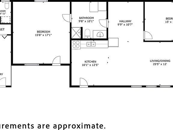 - Included: Free-Standing Range, Microwave, Electric Water Heater