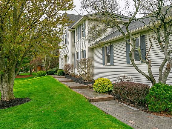 SUMMER OASIS AWAITS! Fairport 4 Bedroom, 2.5 Bath colonial located at the end of a private drive. Sitting on a beautifully landscaped FULL ACRE LOT, complete with Large Deck (painted 2020) for summer cookouts. UPDATED Pool has newer pavers, Hot Tub (2015) with NEW Custom cover! HUGE Eat-In Kitchen with Island/Breakfast bar, Corian countertops & PANTRY! OPEN Kit concept w GREAT ROOM featuring WOOD Burning Fireplace! New carpet in Great Rm & Living Rm. POWDER Room and convenient 1st Floor Laundry. Primary Suite with Walk-In closet, FULL ensuite bath and separate vanity area. Additional 3 Spacious bedrooms with BRAND NEW carpeting. Walk-out Basement is Partially FINISHED for Rec Room, Flex Space or more! Pool table and TV in basement INCLUDED. FAIRPORT Electric! NEWER Electric Hot water Tank (2021) and Furnace/Heat Pump (2015), Pool Liner (2016), GAS Heater & Pump for pool (2020). PET Fence incl collars. Showings begin Wednesday 4/26 at 4pm, Delayed negotiations Tuesday 5/2 at noon. Public open house 4/30, 1-3pm.