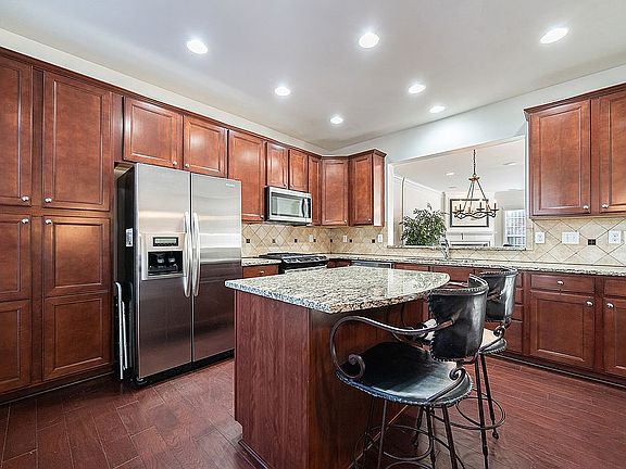 - Kitchen Features: Cabinets Stain, Eat-in Kitchen, View to Family Room, Stone Counters, Kitchen Island