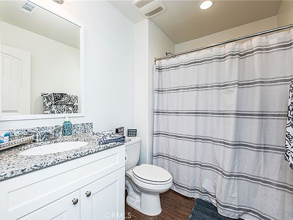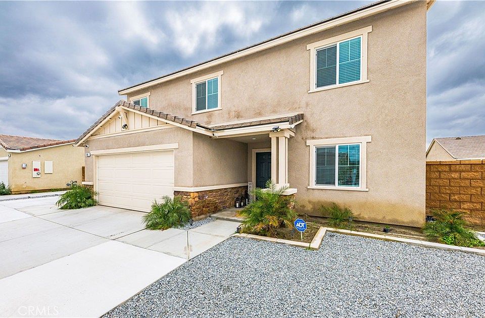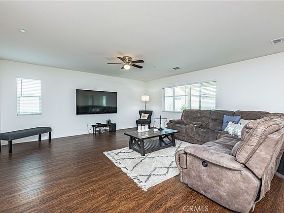 Gorgeous home with paid Solar panels, Built in 2020, No Mello-Roos or special Assessments, Inviting open floor plan, Beautiful flooring throughout the bottom floor, Updated kitchen with high end appliances, Smart light switches and thermostat, paid off Swann security system, Keyless garage entry, Back yard offers Extra large covered patio for entertaining, Half concrete and half artificial grass, Low water maintenance landscape system, Lemon and Pomegranate trees, Close to everything