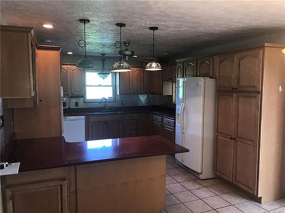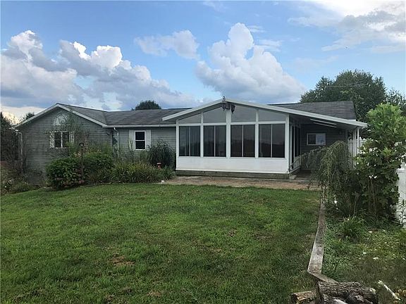 Spacious Home situated on nice hill top acre with great view. Features huge master bedroom suite, beautiful custom kitchen with KraftMaid cabinets with big pantry. Sun room with view of the countryside. Integral and detached garages. Repairs needed to make this home beautiful again. Sold as-is.