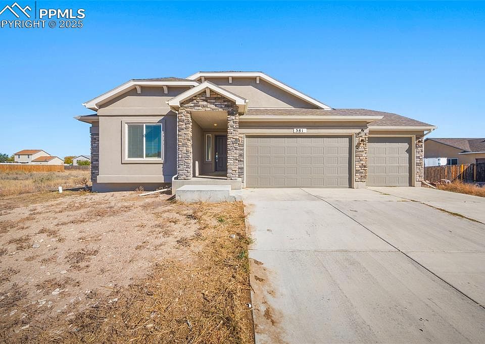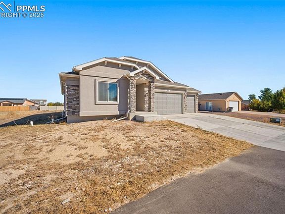 Welcome home to this beautiful modern ranch in Pueblo West, offering the perfect blend of comfort, style, and functionality! Built in 2022, this home feels like new and sits on a spacious lot with no HOA giving you room to breathe, park your toys, and enjoy Colorado living at its best. Step inside to find an open, inviting floor plan with vaulted ceilings, abundant natural light, and a seamless flow between the living, dining, and kitchen areas. The spacious kitchen features modern cabinetry, stainless steel appliances, a large center island, and plenty of storage, ideal for entertaining or quiet nights in. The primary suite offers a private retreat with a 5-piece ensuite bath, double sinks, and a walk-in closet. Two additional bedrooms and a full bath provide plenty of space for family, guests, or a home office. Enjoy year-round comfort with central air and take advantage of the 3-car attached garage for vehicles, hobbies, or extra storage. Outside, you’ll love the low-maintenance stucco and stone exterior and the blank canvas backyard ready for your personal touch... garden, patio, or outdoor living setup! Located just minutes from shopping, dining, and Highway 50, this home combines small-town peace with easy access to everything Pueblo and Pueblo West have to offer. This home is an easy 35 minute drive to Fort Carson and features brand new carpet as of October 2025.