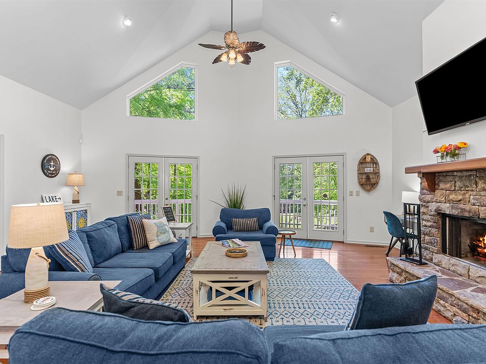 Beautiful fireplaceNewly resurfaced dockLake viewsSplit bedroomsGenerous and inviting porchSeparate showerHis and hers closets