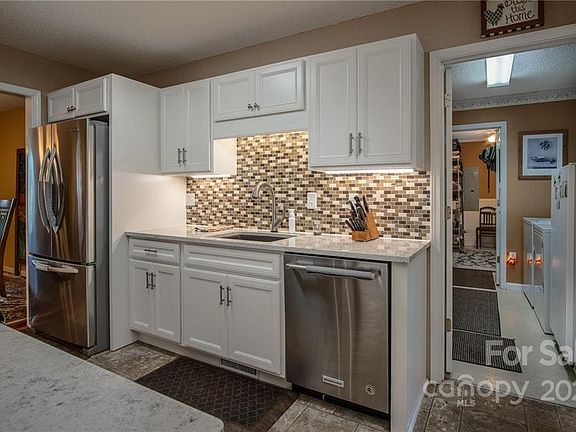 Brevard home with four bedrooms, two car garage, screened porch, landscaped front and back yard. Walking path one block away, walk to town, grocery, restaurants with easy access to Brevard Lumber District. Long list of recent improvements including new HVAC, Roof, kitchen and bathroom remodel and screened porch. This ranch home has one-level living and is in move-in condition. Quartz countertops, custom backsplash, under cabinet lighting in the kitchen and stainless appliances make this kitchen perfect. The living room area has cathedral ceilings, stacked stone fireplace and hardwood floors. The living area leads out to the screened porch that was installed in 2016 and is the perfect place to enjoy the private landscaped backyard. This area of Brevard has the in-town location that has been steadily gaining in value and popularity, in an area with several new homes driven in part by the popularity of the Brevard Lumber District,the Depot Railroad Avenue Park and Brevard Bike Path.