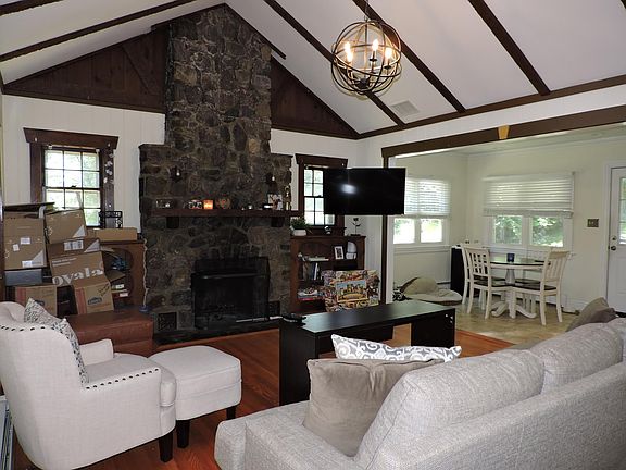 Updated Ranch on a spacious property. Open floor plan with high ceilings, wood beams & wood burning fireplace! Bright & sunny eat in kitchen with granite counters, custom cabinetry & tile flooring. Huge backyard with patio & storage shed. Spacious finished basement with wood burning fireplace, powder room & laundry. Central AC, 1.5 car garage & parking for 4 cars in driveway. Just minutes to public transportation -NYC-Direct train & bus, major highways & great restaurants/shopping in downtown Denville. Tenant pays all utilities including lawn care and snow removal Tenant pays 1 month broker fee