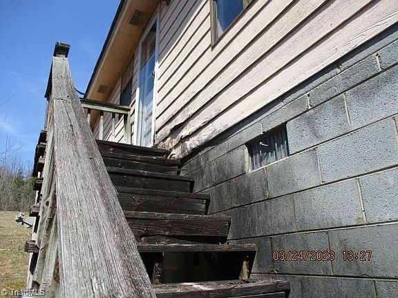Property REDUCED. Located at the end of a dirt road, one level with bonus room on top with 3 bedrooms and 2 baths on two acres. Road Maintenance Agreement between owners (book 1196 page 98-100 Surry Co.) with easement Order Bk 1824 Page 220-230 (11) on 8/1/2022. SOLD in AS-IS Condition for cash.