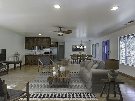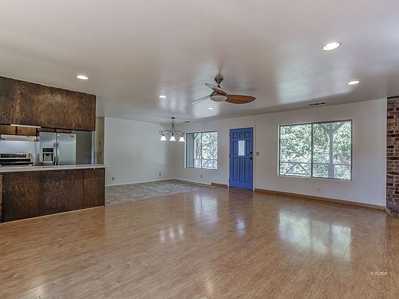 Lots of natural bright light throughout this single level home. Up a private driveway that removes one from street disturbances. The living area is an open concept with living room, dining area, and kitchen with access to the backyard. Split level layout with primary bedroom and bathroom off to one side and the other two bedrooms and guest bath are on the other side of the home. Primary bedroom has dual closets. Convenient location for the laundry area which has access to garage. An attached two car garage with extra storage and a workshop adjacent. Parking for RV or boat. Sunny backyard for creating your own landscaping. The neighborhood is quiet and feels secluded but is minutes from shopping, restaurants and the golf course!