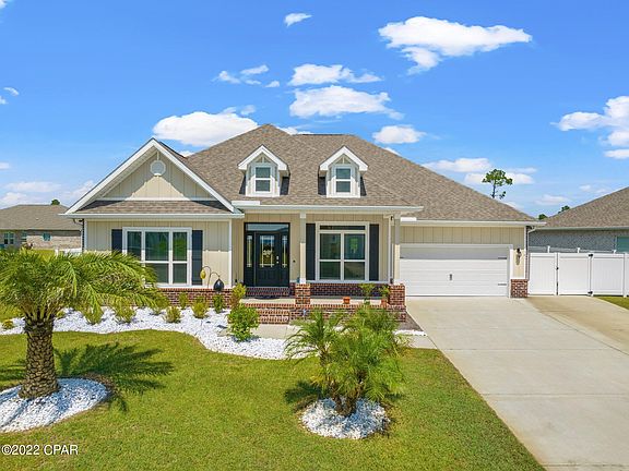 CURRENTLY UNDER CONTRACT, SELLER WILL CONSIDER BACKUP OFFERS Newly constructed McKenzie floorplan with 5 bedrooms and 3-bathrooms is 3,086 SQFT. This home is located in the community of Fanning Bayou and sits across the street from the bay with beautiful water views. This master planned community features a resort like community pool with a spa, gas grills, playground and plenty of seating. This amenity is perfect for get together and parties for all ages. The outside features of this home are the 3-car wide driveway, Parking pad beyond the RV gate for boats, trailers or utility vehicles, expansive covered and screened rear porch measuring 30x30 with coated epoxy flooring. As you enter the home you will find an open and welcoming foyer, a bonus room to the left of the front entry that could be used as a bedroom or flex room a large well-lit formal dining room, tray ceilings, ample storage with a large walk-in pantry, vinyl plank flooring, 10-foot ceilings and bull nose corners throughout. The main living space is an open concept with luxury plank vinyl flooring, perfect for a large family or entertaining. In the kitchen you will find a beautiful island with ample cabinets, counter space, seating and Kinetico water filtration system. This home also has a breakfast nook for extra seating!! The living room has tons of natural lighting and a modern color, this floor plan offers 2 standard sized bedrooms, and two oversized bedrooms. The master suite features a walk-in closet, double vanity, garden tub, and separate shower. Some additional features of this home include the backyard that backs up to a gorgeous community lake where you will regularly see turtles and birds. With this home you will also have the standard smart home technology package including- touch panel, keyless entry, and the option to add additional devices. This community is located just minutes from the international airport, 25 minutes to Panama City Beach and Pier Park, 45 minutes to Tyndall AFB and the NSA, Naval base.