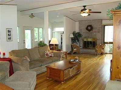 Beautiful mid century ranch on one of the prettiest streets in the Gates! Almost 1/3 acre just 2 blocks from lake & CCAPOA's private beaches. Charming brick entry & vaulted ceilings greet you! Living/dining areas feature peg & groove floors. Beautiful natural views surround you from the plentiful windows (most are new!) Newer furnace & A/C, new H20 heater in 2005, new master bath 2011, new carpet 2013 & new well 2010