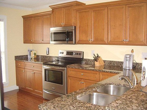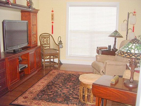 This one is A+. Many upgrades - hardwood flooring in all living area. Full lenght covered porch. Gorgeous back yard larger than some others - back gates open to undeveloped area. Granite and stainless steel appliances in kitchen. Stained custom cabinets with old world glaze.All kitchen cabinets and pantry have custom built-in pull out shevling. Double car garage with 2' extended width. A MUST see.