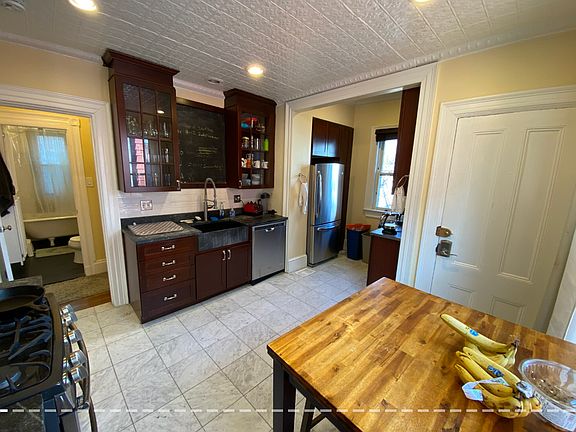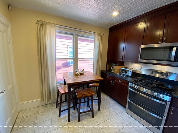 Davis Square Closest train = Davis Square (Red Line T) 5 bed/2 bath (multi-level, 2nd and 3rd floor) Beautiful Hardwood floors throughout Updated & modern kitchen (new cabinets, stainless steel appliances, granite counters) Updated, tiled bathrooms Central heat & A/C Coin-op laundry machines in the building (back hallway) Private front deck! Shared backyard Street parking with City permit Off-street parking available for rent Water included in the rent. Standard 12 month lease. Requires first, last, security deposit, and broker fees before move in.
