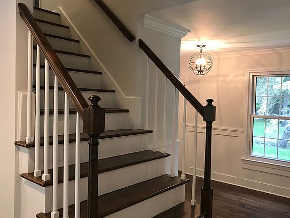 Beautifully renovated classic colonial sited on private and picturesque property. The high-end custom kitchen with large island and gourmet appliances opens to a breakfast/family room with sliders to a deck overlooking private back yard. Formal dining room with custom paneling.Living room with fireplace and french doors leading to an oversized deck. Mud room and laundry room next to the 2 car garage with plenty of storage. 3 generously-sized bedrooms and the master suite with walk in closet. 3 stunning new bathrooms with carrara marble countertops. Pristine Hardwood Floors. Perfect home for commuters yet in a quiet and serene setting. Be sure to click on the virtual tour of the property.