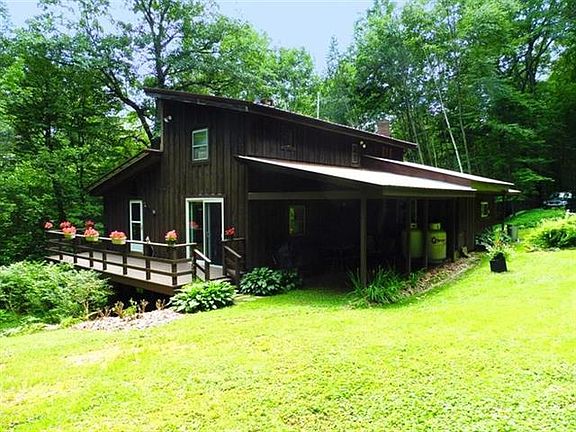 Does peace & quiet with privacy interest you? Imagine living in this secluded HOUSE surrounded by Nature & 30+ acres of mature woods with gorgeous amazing waterfalls. 2 story home includes 3 BR, 2 baths & eat-in kitchen. Curl up in front of the large floor to ceiling brick, gas fireplace in the spacious 14'x31' living room which boasts a 1/2 cathedral ceiling. If you're in the mood to watch television or browse the internet, cable TV & high speed internet access are available. Sunbathe or barbeque on the 10'x28' deck or relax on the 8'x16' covered porch. A large dry, walk out cellar with heat offers potential for additional living or storage space. To protect your car from the weather and store your all-season outdoor toys, there is a 20'x30' half-open car port/storage shed. Added bonus is a 2 story A-frame building shell ready to finish with a potential limited only by your imagination. This one-of-a-kind property is located within 20 minutes of Oneonta,Cooperstown & access to I88
