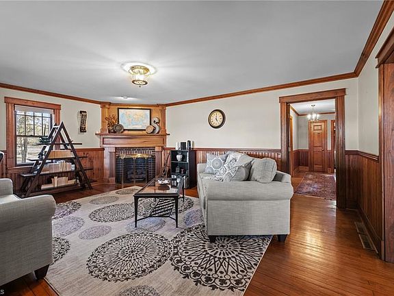 Private retreat with rocking chairs, covered porch, and beautiful sunsets! Sitting on approximately 40.08 acres of land, this lovely well maintained farm house has all the character and charm you could imagine. Original window moldings & pine floors cut from timber on property/refurbished wood from cabin is used throughout home. Separate log cabin is perfect for studio/office/play house. Huge spacious RV garage w/ workshop. Enjoy all kinds of wildlife right in your back yard. (See Agents Remarks)