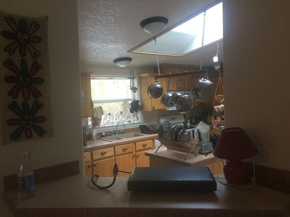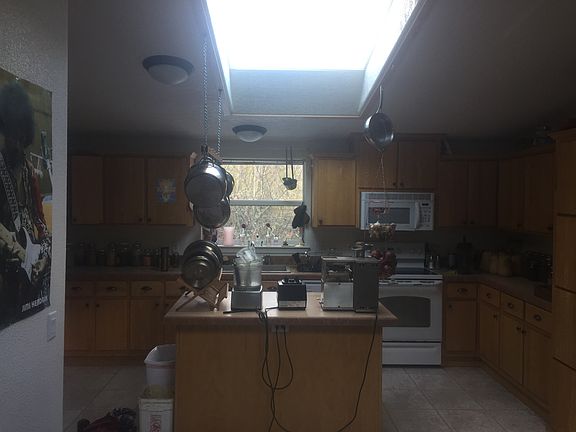 Great location - country feel, but close to town. This nice cabin style manufactured home sits on 1.5 acres and has a desirable split floor plan -- open and bright with large skylights, hardwood floors, vaulted ceilings and detached garage with wood stove and a loft for storage or work space. Covered patio perfect for entertaining. This property is fully fenced around the home with garden beds & numerous fruit trees.