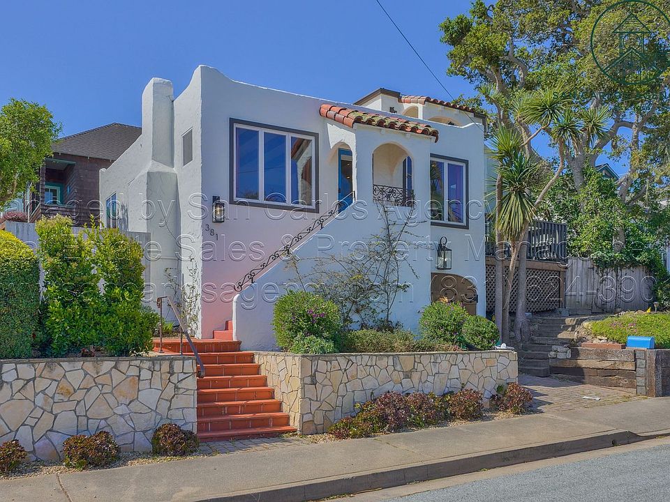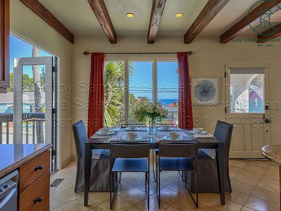 (MCLOH) Ocean views at "Casita del Mar!" San Carlos Agency, Inc. offers this 2 bed (king, queen), 2 bath, furnished Spanish-style beach bungalow in Pacific Grove that is the ideal backdrop for your upcoming residency on the Peninsula! Located just steps from Lover's Point Beach and a quick walk to town, enjoy leisurely bike rides to the recreation trail, beach days, and dinner on Lighthouse Avenue. Downstairs offers views of the Pacific from the cozy living room, dining area with seating for six, updated kitchen with gas stove, and cute deck area. Down the hall you'll find a bathroom with tub/shower combo, queen bedroom with TV, bonus area with a desk and day bed for an extra guest, and den. The primary suite is upstairs and offers more ocean views, a gas fireplace with TV above, plus a beautifully updated bathroom with a large walk in shower. The den has a large flat screen TV and comfy seating area. Private, sheltered backyard is hardscaped and offers dining for 6+. With newer, tastefully selected furnishings, updated finishes, and the ideal proximity to the best PG has to offer, you won't want to leave! Washer/dryer is in garage, which fits one car plus plenty of storage space for bikes, kayaks, etc. No pets. No smoking. Contact San Carlos Agency, Inc.