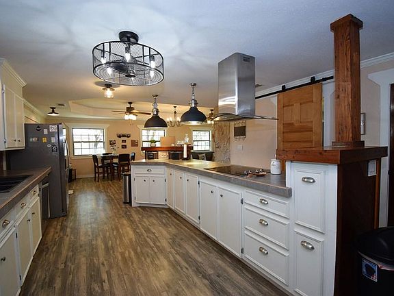 Beautiful home situated on 5.70 acres in the Sixmile community. Home offers the perfect rustic feel with its antique doors and repurposed wood ascents. Oversized kitchen with large island, granite composite sink, stainless steel appliances, updated cabinet hardware, double ovens, and nice pantry is perfect for any cook. Living room offers coffered ceilings, gorgeous lighting, and beautiful woodburning fireplace. Master Bedroom has large closet and ceiling is repurposed wood from the old Methodist church in Luling Texas. This property is absolutely amazing and will make any buyer happy.