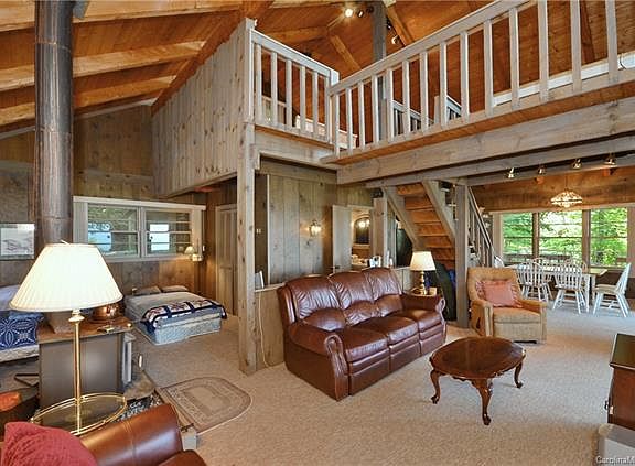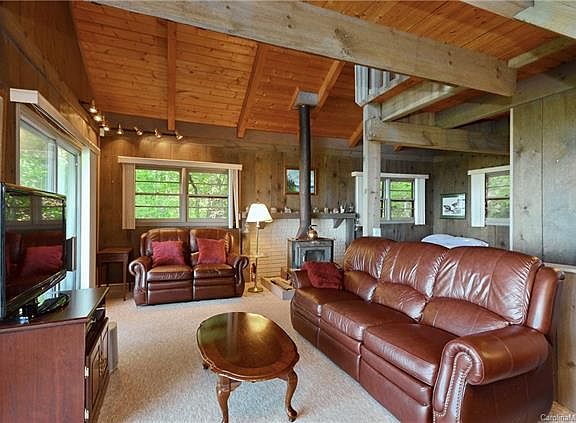 Weekend in the Wilderness! in this rustic chalet nestled on 8.5 of your own acres. Breathtaking mountain views through almost every window. Open floor plan, bedroom with reading loft, wood-burning stove, exposed beams, and wrap-around deck. Snow in the winter, cool air in the summer, nature's beauty all year round. Plus, an extra 1 bedroom, 1 bath log cabin for guests. Also includes a paved R/V lot! Invite a couple of friends and pack your bags for four season fun!