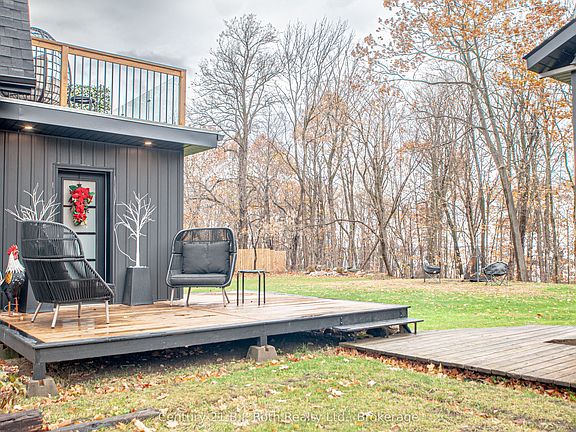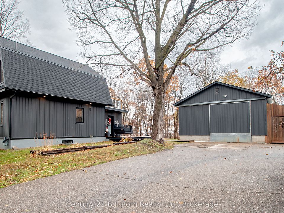 Welcome to 381 Olive Street in Midland - a unique opportunity zoned Industrial on nearly half an acre, offering exceptional versatility for home, hobby, or business use. This fully renovated 2-bedroom, 2-bathroom home (2023) blends modern comfort with rare functionality. At the heart of the property is the impressive 30' x 25' heated garage, complete with a vehicle lift - perfect for mechanics, hobbyists, trades, or anyone needing serious workspace. The home features a bright, open layout with stylish finishes throughout. An eat-in kitchen featuring new appliances and quartz countertops. The primary bedroom includes a walkout to a beautiful private deck, where you can enjoy seasonal water views. Outdoors, you'll find plenty of space to spread out, plus a charming $25K bunkie added in 2024, ideal for guests, an office, or extra storage. Located close to several local trail systems, including the Midland Rotary Waterfront Trail (part of the Trans Canada Trail), the Ganaraska Hiking Trail, and nearby snowmobile and ATV trails, this property delivers convenience, lifestyle, and endless potential in one package. A must-see for those seeking space, flexibility, and standout features you won't find anywhere else.
