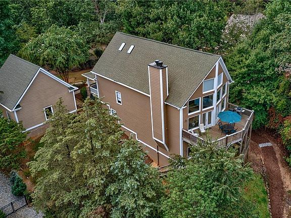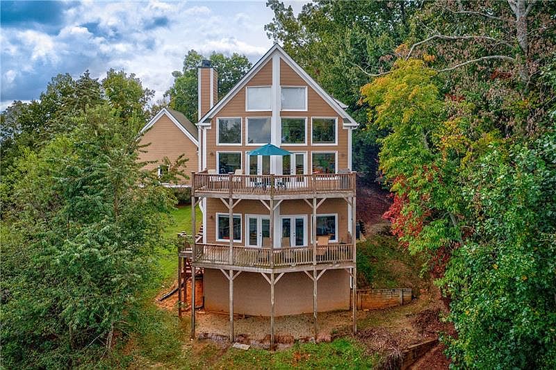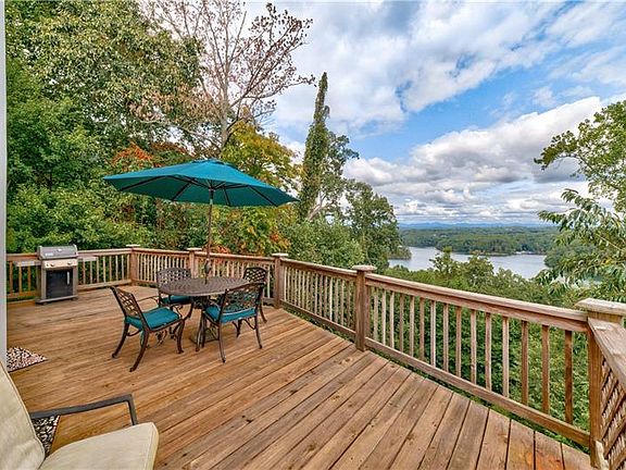 Welcome to Casa en Cielo â House in the Sky. Views from all 3 levels are amazing! This home is a great place for entertaining large gatherings or just a few friends; outside in the warm months, or around one of the two cozy stone fireplaces in the winter. The great room boasts a 25 ft wall of huge windows, patterned after the chalets of Telluride, CO. Thereâs an open kitchen with granite counters, island and eating bar where you can chat with the cook. Itâs just a few steps to move from the great room out to the upper deck which has a Webber grill and lots of sunshine. There are also two bedrooms on this floor, with walk in closets, and a full bathroom. Upstairs, the spacious master suite has vaulted ceilings with dual sky lights, a great walk in closet, oversize bathroom shower, and jetted tub. The lower level offers 12 foot ceilings, a huge bedroom (perfect for some bunk beds if you have a bigger crew), two large closets, a full 4 piece bath, kitchenette, and again, huge windows and a second deck to enjoy... the view. Venturing outside you can take a side-by-side down the hillside path to a single slip, covered, DEEP water dock, and spend the day enjoying Lake Lanier. Just 5 minutes to GA 400, the home is convenient to restaurants, shopping and many outdoor activities. Just 1.4 miles to War Hill Park with boat launches, sandy beach and bike/walking paths. Interior and exterior of home have been repainted in the last 2 years. New upper decking. 2 newer HVAC units. Finished lower level 2 car garage with large unfinished attic suitable for storage or studio apartment build out. Low electric bill averages $250 /month. Casa en Cielo is a one of a kind house in the sky. Don't miss the opportunity to experience it's beauty.