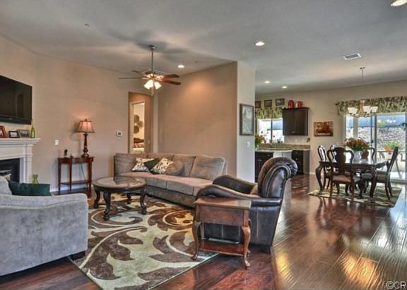 K. Hovnanian's Four Seasons at Beaumont offering Resort Style Living for 55+ This "Hearthstone" from the Keystone Collection is 2,036 square feet of living space. This home is only 7 months old, owners job promotion and relocation is the reason for the sale. This home is in turnkey condition, ready to move in. The back yard is completed and includes a full patio cover. Featuring 2 bedrooms, 2 baths, den, cozy family room with fireplace, beautiful dark hardwood flooring, spacious size kitchen with beautiful granite and dark cabinetry, window coverings, huge laundry room, 2-car garage with custom storage space. Lodge amenities include pool, tennis court, fitness center, walking trails, ballroom, bistro, theatre room, billiards, salon, and much more! Why wait for a new home that could take months to complete, this gorgeous home is ready NOW! Very low special assessments on this home.