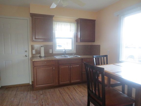 Very nice clean home with many updates. All new vinyl windows, newer paint & flooring, updated kitchen and brand new bathroom with laundry room. As you arrive, you will appreciate the 6 foot chain link fence that surround the property! Inside there is a nice living room with vinyl wood-look flooring into the kitchen with newer cabinets & microwave with laminate flooring and access to the oversized single garage. The home originally had two bedrooms but the current owners changed the second bedroom into a large bathroom and laundry room. The former laundry room is off the kitchen and makes a great pantry/storage room with easy access to the gas furnace and electric water heater. Sellers added some insulation in the attic and the utility bill are very reasonable. The exterior has maintenance free metal siding. The roof has two layers, one wood shingle with asphalt shingles over the top, there is some repair that needs to be done that the sellers are willing to do, weather permitting. The seller is replacing the exterior door on the back of the garage and just added a firewall between the garage and the home.